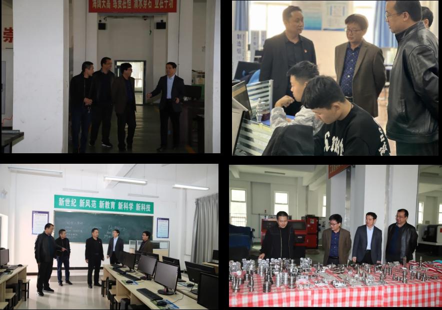 杨洁一行在教育局副局长雷诚志、学校校长武升启等领导陪同下参观了学校校园和部分专业教学设施。