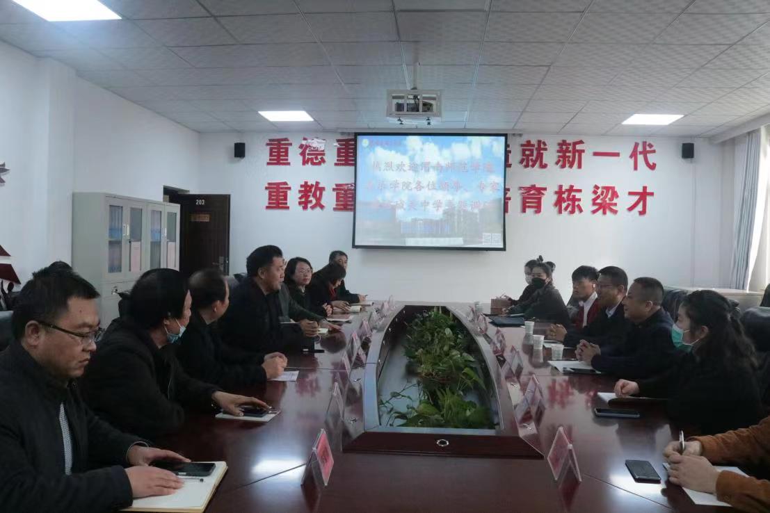 刘鹏对城关中学的发展变化及独具特色的办学理念、人才培养模式予以充分肯定,并介绍了学院的办学特色、专业设置、社会服务等方面情况,明确了此次调研目的。他表示,双方积极开展交流与合作,努力推动各项帮扶措施落地见效、开花结果,实现双方优势互补、资源共享、共赢发展。