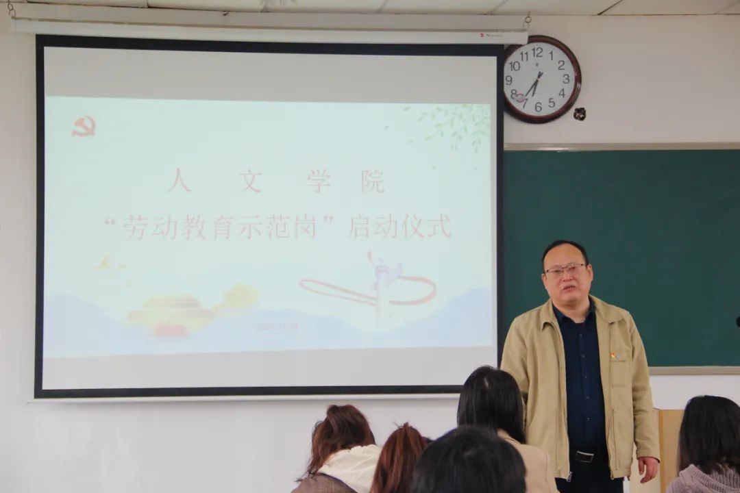 11月4日下午,人文学院举行 “劳动教育示范岗”启动仪式。该院党总支书记李三岗,党总支副书记、副院长张晶,党务秘书乔晓琼,学工办主任白光霁,团总支书记孟子祥,辅导员周雨坤、杨帆,以及60余名学生党员、入党积极分子参加了启动仪式,辅导员邱渭勤主持会议。