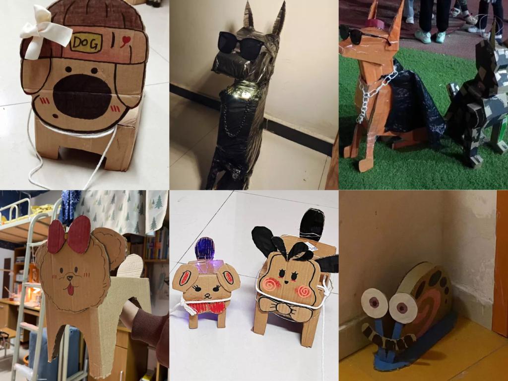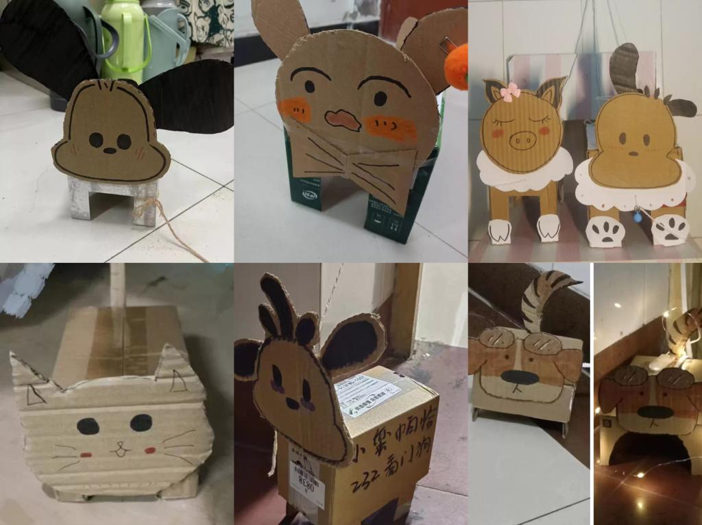 学生们参与热情高,纷纷展示出自己手工制作的宿舍“萌宠”。有形态各异的宠物狗、小蜗牛、小猪、小猫咪等。一个个废旧纸箱或者快递包装袋在同学们的精心装扮下,成为乖巧可爱、憨态可掬、栩栩如生的宿舍“萌宠”。
