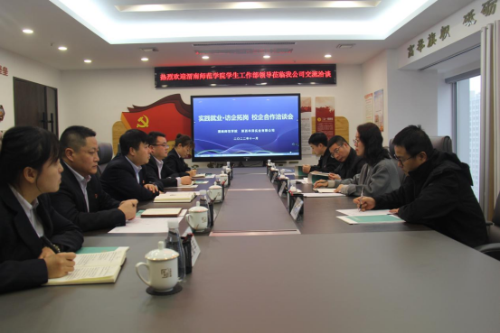 随后,双方围绕学生培养、实践就业、平台建设、社会服务和奖学金资助等方面的合作事宜进行了深入探讨并达成共识,均表示今后将继续加强对接沟通,充分发挥各自优势,在校外实习实训、就业基地建设等方面开展深度合作,有效实现资源整合,优势互补,相互支持、携手共进,共同为高质量人才培养及区域经济发展做出贡献。(通讯员 王哲 审核人 田耿辉)