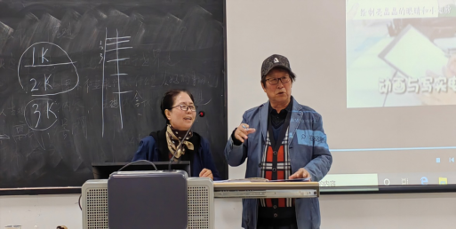 讲座中,吴兴善以自己50多年创作动画的经历为切入点,分享了他主持或参与创作《猫和老鼠》、《兔八哥》和《机器猫》等动漫的经验体会,多角度细致阐述如何运用运动规律,把动画做的既合情合理又生动有趣的思路和方法;解析了当前韩国动画创作“二维+三维”的创作情况和自己在富平县小柿人文化传媒公司创作《小柿人的family》的最新进展。讲座结束后,同学们针对讲座内容和专业学习积极提问,吴兴善导演细致地做了解答,并鼓舞同学们尊重传统动画技法,传播好中国文化。讲座现场互动气氛热烈,精彩的讲话赢得所有师生的阵阵掌声。