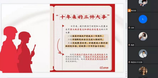 融入活动“拓展学”,融入到促进基层党建提质增效中。各党支部迅速组织,通过主题党日、支部书记讲专题党课、专题研讨等形式,组织党员师生紧密结合岗位工作实际,聚焦疫情防控、党建、教学和思政等工作,交流学习心得体会,广大师生党员谈认识、谈感悟,用二十大精神武装头脑、指导工作,收集师生撰写心得体会120余篇。打造“党员先锋论坛”专题栏目,开展“学习党的二十大,永远跟党走、奋进新征程”主题党日活动、“党的二十大·晒晒我的学习笔记”等活动。开展学院辅导员走进班级宣讲二十大精神、“学习贯彻二十大,砥砺奋进跟党走”主题升旗仪式、“庆盛世华诞,喜迎二十大”我与国旗合个影活动、“喜迎二十大,赞歌颂中华!” 物电学子经典诵读致敬祖国母亲活动和“学习贯彻二十大,做新时代青年”主题演讲比赛等活动。