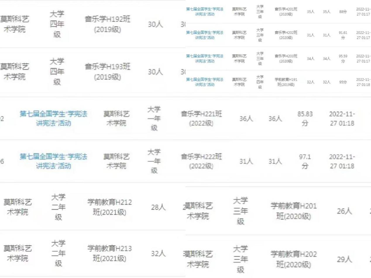 学院根据学校宪法学习活动要求组织全院1107名学生,参加教育部全国青少年普法“学宪法 讲宪法”答题活动,学院参与率达到100%。有效推动莫斯科艺术学院学生学法、知法、守法、用法意识,为建设法治校园,推动法治社会建设奠定了坚实基础。