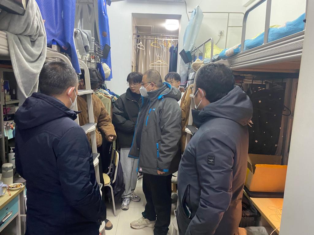 走访期间,殷晓克一行人详细询问了宿舍暖气情况、食堂就餐情况等各方面。并查看了学生宿舍管理情况,强调辅导员要深入学生宿舍进行安全检查,及时排除安全隐患,确保学生人身和财产安全。其次,他强调,在“乙类乙管”情况下,认真做好学生健康防护工作。同时,雷毅提醒宿舍同学抓紧时间,认真复习,做好期末考试准备。同时要建设积极向上的宿舍文化,养成良好的生活方式、文明习惯,营造宿舍文化新风尚。