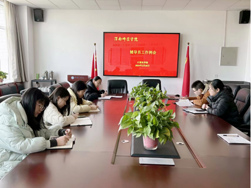 2月20日上午,计算机学院召开新学期全体辅导员工作会,学院党总支书记武楠、学工办副主任李雷玮、党务秘书柳宏亚及全体专兼职辅导员参会,会议由武楠主持。