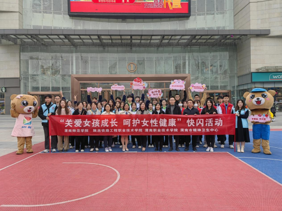 3月7日下午,威尼斯邀请陕西铁路工程职业技术学院、渭南职业技术学院、渭南市精神卫生中心等单位,在吾悦广场联合举办“关爱女孩成长 呵护女性健康”快闪活动。