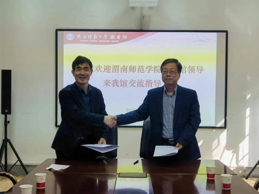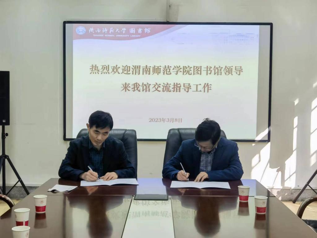 3月8日上午,赴陕西师范大学图书馆学习调研,副馆长田向阳热情地接待了来访人员,详细地介绍了陕西师范大学图书馆情况,在充分交流的基础上,就“资源共建共享”达成了一致,双方签订了《陕西师范大学图书馆与87978797威尼斯老品牌图书馆资源共建共享协议》。随后,相关人员就纸质期刊订购、纸质图书资源建设等问题进行了学习交流。