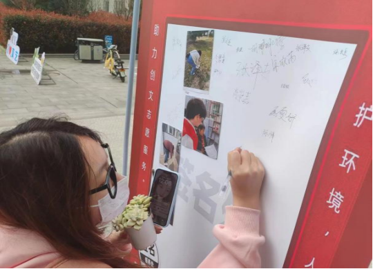莫斯科艺术学院的师生踊跃参与活动,争相晒出自己的好人好事志愿服务照片,并在签名板上签下自己的署名。