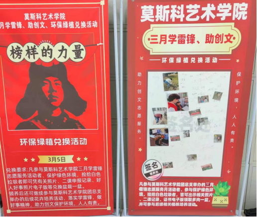 3月24日,莫斯科艺术学院开展三月学雷锋、助创文、环保绿植兑换活动。