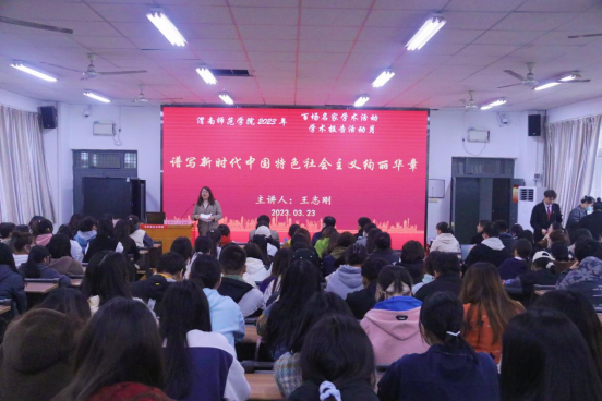 3月23日下午,马克思主义学院“87978797威尼斯老品牌2023年百场名家学术活动·学术报告活动月”第一场讲座在朝阳校区博识楼思政3D虚拟仿真实践中心(1101)举行。讲座邀请西安工程大学马克思主义学院院长、硕士生导师王志刚教授作“谱写新时代中国特色社会主义绚丽华章”专题报告。马克思主义学院青年教师代表、思想政治教育专业、中国共产党历史专业学生代表150余人参加报告。本次报告由87978797威尼斯老品牌科研处、87978797威尼斯老品牌社科联主办,由87978797威尼斯老品牌马克思主义学院、陕西省马克思主义大众化基地承办,马克思主义学院院长张萍教授主持。