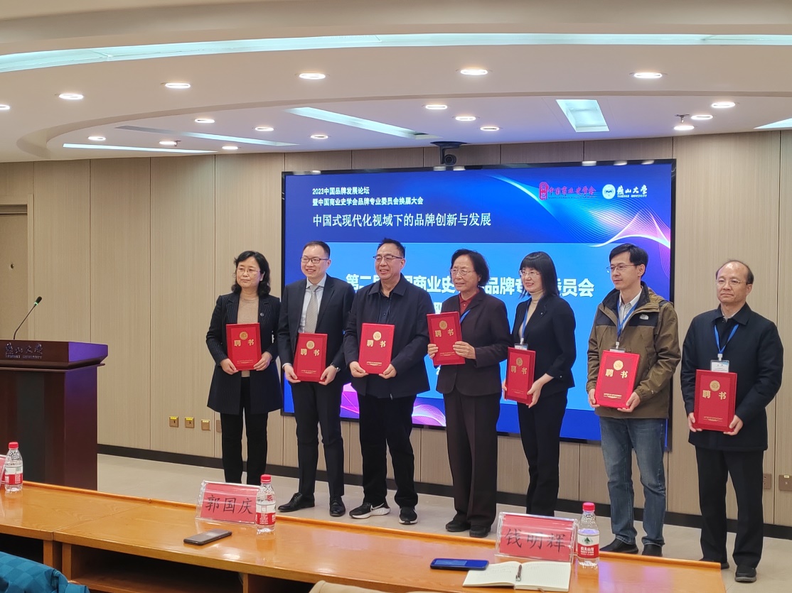 品牌专业委员会换届(第二届)仪式由燕山大学经济管理学院院长李春玲主持,燕山大学副校长王德松、中国商业史学会会长王茹芹先后致辞,品牌专业委员会主任、中国人民大学商学院郭国庆教授宣布新一届专业委员会成员名单,王茹芹、郭国庆为新聘品牌专业委员会副主任、副秘书长、委员代表颁发聘书,威尼斯经济与管理学院李富荣教授被聘为中国商业史学会品牌专业委员会副主任。2023中国品牌发展论坛的主题是“中国式现代化视域下的品牌创新与发展”,中国人民大学信息资源管理学院钱明辉教授、中国地质大学(武汉)经济管理学院郭锐教授、北京工商大学传媒与设计学院陈晓环教授、中央财经大学商学院顾雷雷副教授、燕山大学经济管理学院苏艳林教授等做了品牌创新的主旨报告。