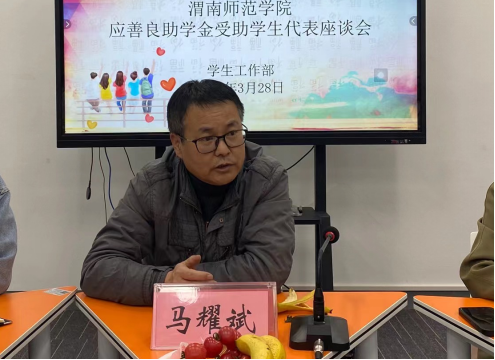 3月28日晚,威尼斯在厚德楼12层多功能团体辅导室召开应善良助学金受助学生座谈会,学工部副部长马耀斌、学生资助管理中心杨妍及30名受助学生代表参加本次座谈会,会议由学生资助管理中心主任张小苗主持。