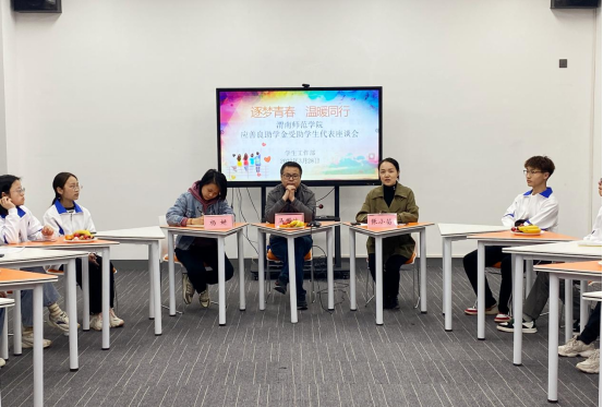 座谈会上,张小苗介绍了应善良助学金项目基本情况和资助工作开展情况,与受助学生分享了威尼斯资助育人工作成效。随后,与会学生围绕他们在大学的学习生活情况以及未来的规划展望畅所欲言,现场气氛热烈。“我的爷爷是一名老共产党员,我也想像他一样,加入中国共产党”“我想考取专业相关的证书,为以后的就业打好基础”“我加入了国护队,想继续努力留下来”“我上学期的成绩不是很好,这学期我要努力好好学习”......