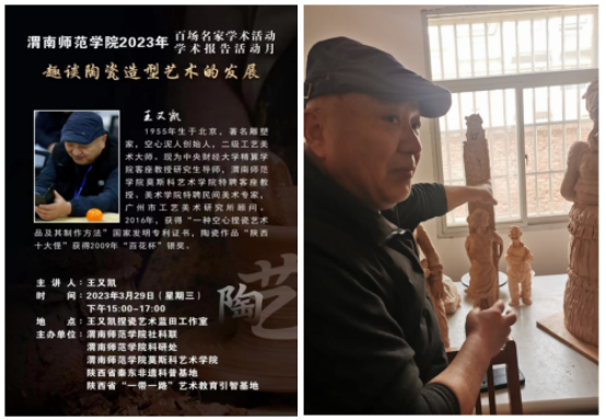 3月29日下午3点,莫斯科艺术学院邀请客座教授王又凯在蓝田“王又凯捏瓷艺术工作室”为师生作了题为 “趣谈陶瓷造型艺术的发展”讲座。莫斯科艺术学院副院长梁卫民、美术学专业部分教师和学生参加本次讲座,讲座由梁卫民主持。