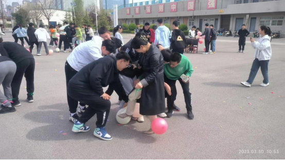“贴膏药”之后,还进行了绑腿踩气球、运气球、松鼠搬家、抢凳子大比拼等趣味游戏。游戏场上,充斥着师生们的欢声笑语,在需要合作的环节,同学们团结协作、配合默契;在追逐和争夺的环节中,同学们放开奔跑、勇争敢夺,却也不忘“友谊第一,比赛第二”。老师们也加入到了游戏中去,与同学们一起相互配合、愉快玩耍,使得师生关系在互动中更亲密了许多。