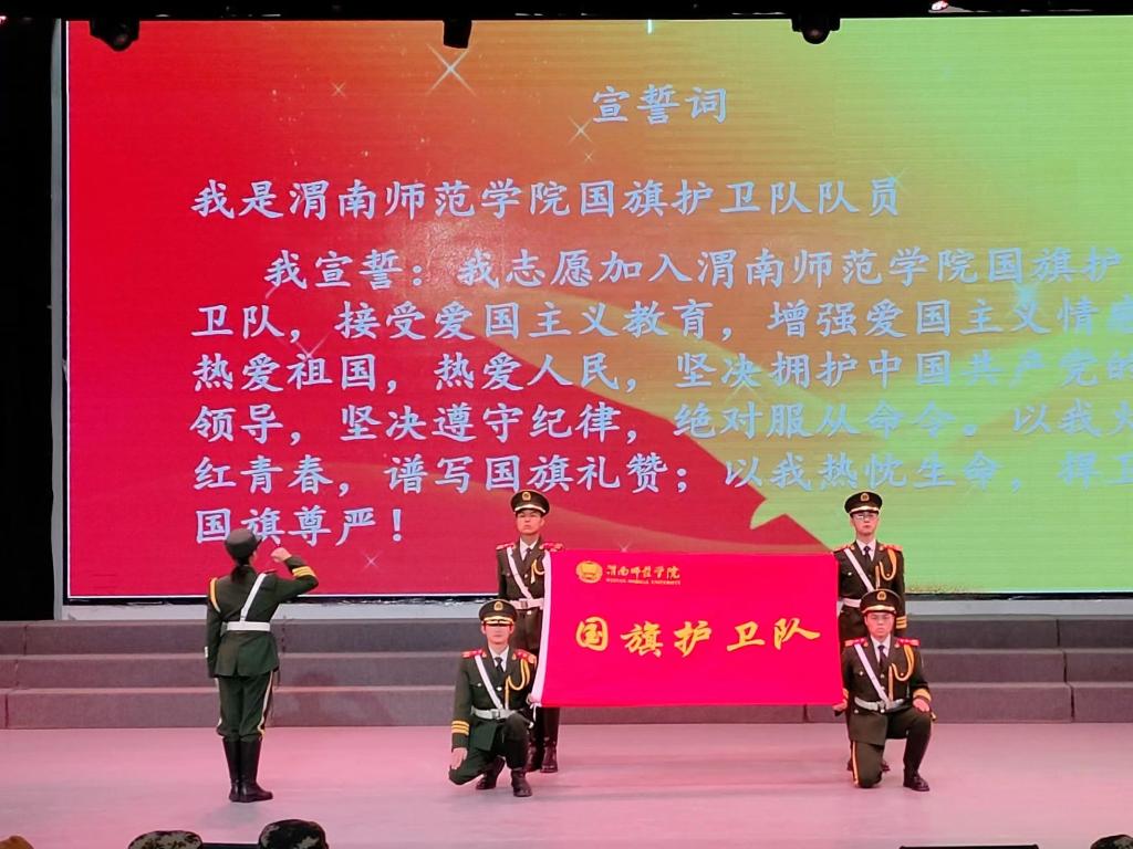 最后,面向队旗,由队长张宁带领第十一届国旗护卫队队员庄严宣誓,他们以洪亮的声音宣告着。从这一刻起,他们将传承国护精神,创造国护更美好的未来。