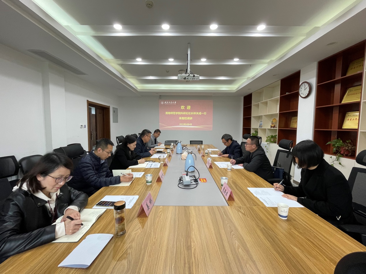 4月4日下午,学校科学研究处处长林关成、副处长王有景等一行4人赴西北工业大学进行调研学习。西北工业大学科学技术研究院院长马炳和、综合管理中心主任常威威、基础研究部部长田威、科研保障部部长李飞及相关科室人员参加此次调研。
