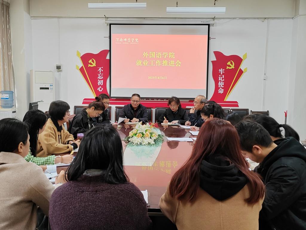 4月6日上午,外国语学院召开2023届毕业生就业工作推进会,部署2023届毕业生就业工作。外国语学院处科级干部、专业负责人、全体辅导员参会。