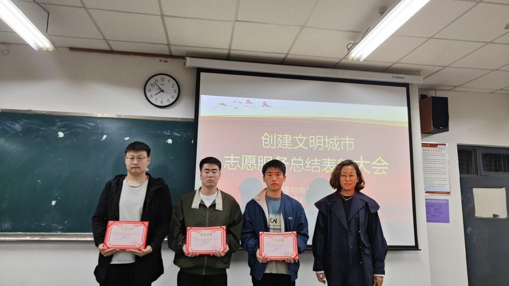 4月6日晚,物理与电气工程学院举办创建文明城市志愿服务总结表彰大会,对本次活动中涌现出的先进个人、优秀志愿者进行了表彰,激励全体学生积极投身志愿服务活动,在学院形成“我志愿 我服务 我参与”的志愿服务氛围。学院党总支副书记权轻舟、专职辅导员、受表彰同学及22级部分学生代表参会。