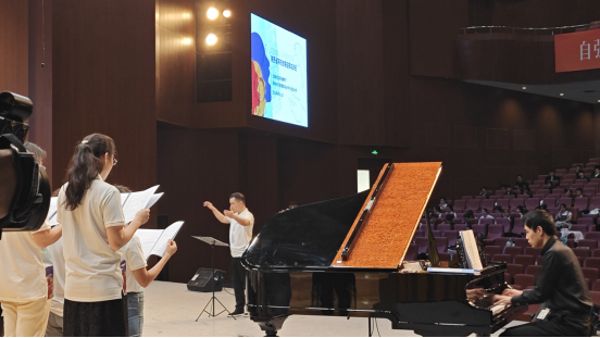 本次培训共4天,开设12个单元课程,共有来自全省近百所大中小学的200余名代表线下参加本次培训。孟大鹏、苏严惠、侯颉、潘行紫旻、李强、窦铁民、牟文昊等专家作了《合唱作品的研读、训练及表演呈现》《合唱的音准训练原则与方法》《指挥法》《大学合唱团组建及训练中的几个必要元素》《与学生共建优秀的合唱音响》《音乐创作中的风格与技术》《合唱训练中的声乐技术与音色观念》等专题报告。专家与学员围绕合唱指挥方方面面的问题进行了充分研讨,开展了美育实践活动,并举办了结课音乐会。张浩作为学员代表,训练并指挥演出了合唱作品《清平调》。音乐会结束后,陕西省学校合唱指挥培训班组委会为全体学员发放了结课证书。(通讯员 张浩 审核人 高红菊)
