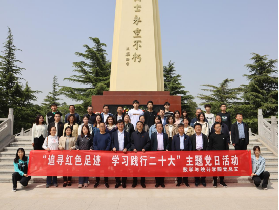 4月12日下午,数学与统计学院党总支组织党总支理论学习中心组成员、教工党员、部分教师和学生共计40余人前往蒲城县永丰革命烈士陵园及合阳初心公园开展“追寻红色足迹 学习践行二十大”主题党日活动,深切缅怀革命先烈,铭记党的光辉历史。学校党委委员、副校长常青林全程参加并讲党课。