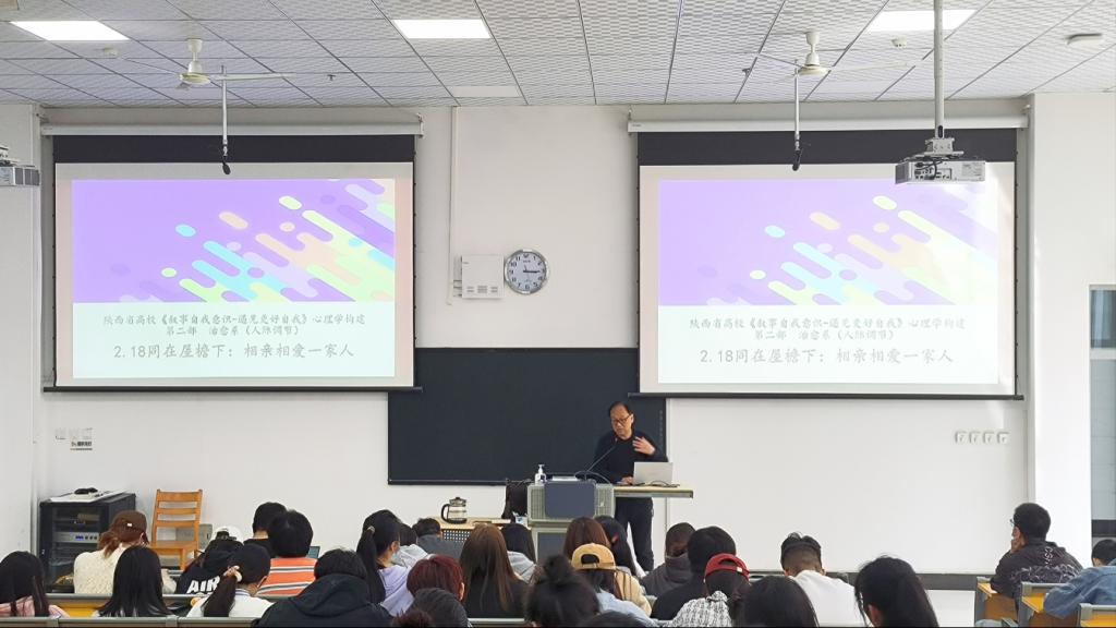 4月12日下午,陕西省高校心理素质教育研究会会长郑林科教授应邀为美术学院学生作《站在科技风口:创设未来遇见更好的自己》专题讲座。美术学院党总支书记陈进卫、学生工作办公室负责人徐宁、大学生心理健康教育指导中心专职教师杨宁、美术学院全体辅导员及2022、2021级全体学生参加,本次讲座由陈进卫主持。