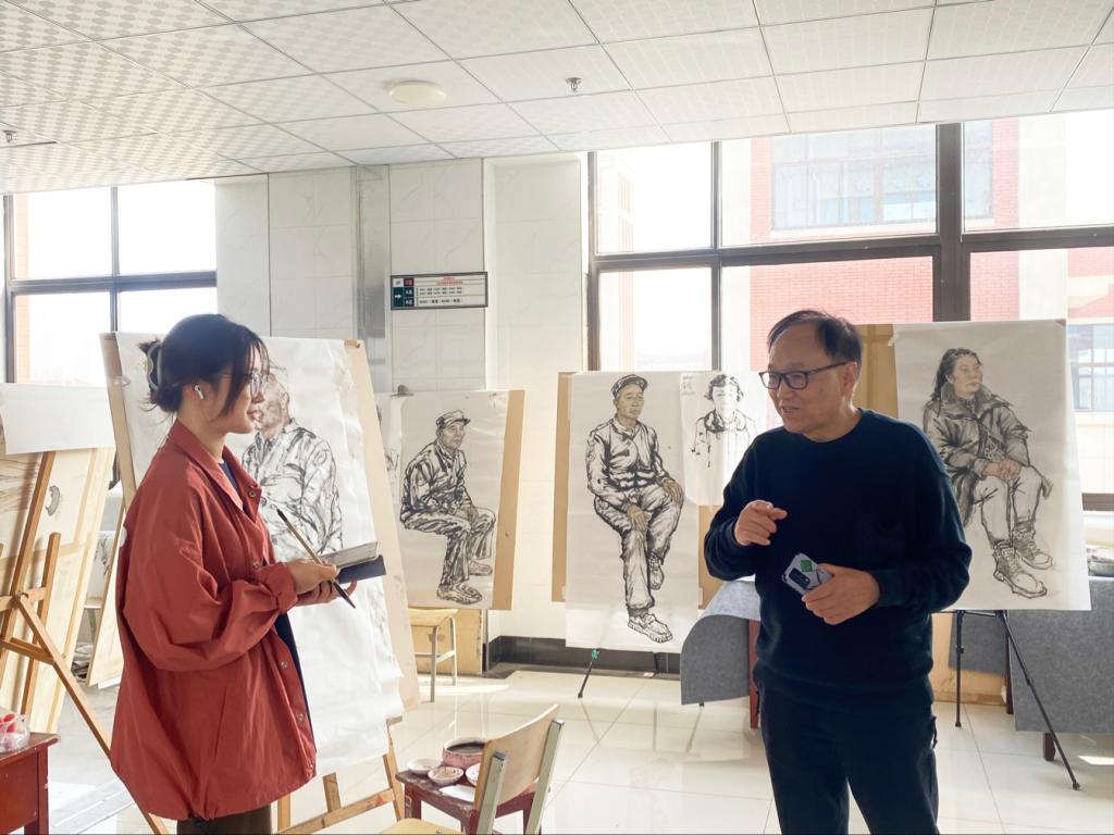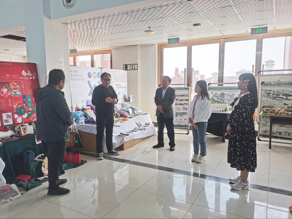 讲座结束后,郑林科参观了美术学院师生作品展、文创产品展。他对美术专业学生的专业性给予肯定,他详细询问相关产品的创作过程及创造灵感,他表示,学生们能够将艺术设计与教育、文化等高度融合,能够使产品更加贴近生活、贴近生产实际,具有很强的艺术观赏性和启发性。在画室,郑林科与学生亲切交谈,鼓励学生创新创业,并通过各类传播媒介将专业技术和文化内含展示给大众,为以后更好的服务社会。