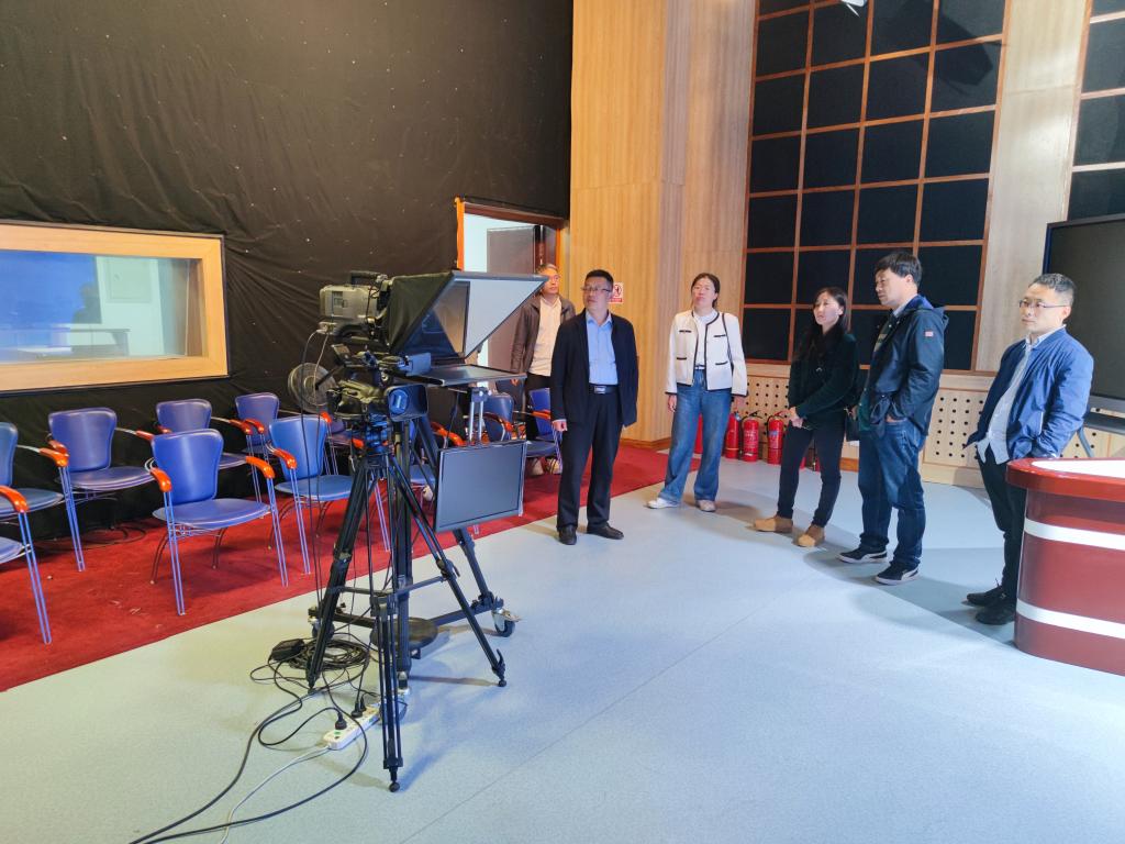 座谈结束后,曹熙斌一行参观了陕西师范大学新闻与传播学院实验室,了解虚拟演播厅、融媒体指挥调度中心、网络媒体设计与制作实验室、影视调色实验室等实践场地的使用情况与管理经验。