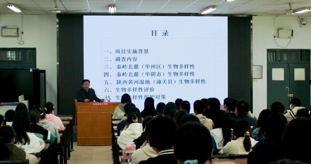吴逸群以华州区、华阴市、潼关县为例,从实施背景、调查内容、生物多样性、生物多样性评价、生物多样性保护对策等方面详细介绍了秦岭北麓及陕西黄河湿地省级自然保护区生物多样性本底资源调查评估。同时结合该院学科特点,将生物多样性保护专业知识与生态环境保护相关知识有机结合,对非专业人士日常如何观察、了解并保护身边生物多样性和生态环境具有很强的针对性和指导性。