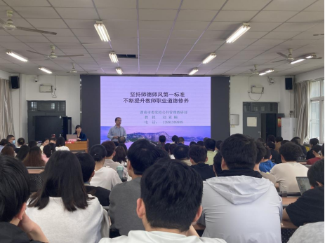 赵亚楠从师德师风的涵义、师德师风内涵的新拓展、师德师风建设的基本要求三个方面引经据典、例证详实的阐述了教师为学、为事、为人的标准和要求。她强调,作为教师要成为做学生锤炼品格、学习知识、创新思维、奉献祖国的引路人,更要做到远离“七条红线”,做立德立功立言的“大先生”。