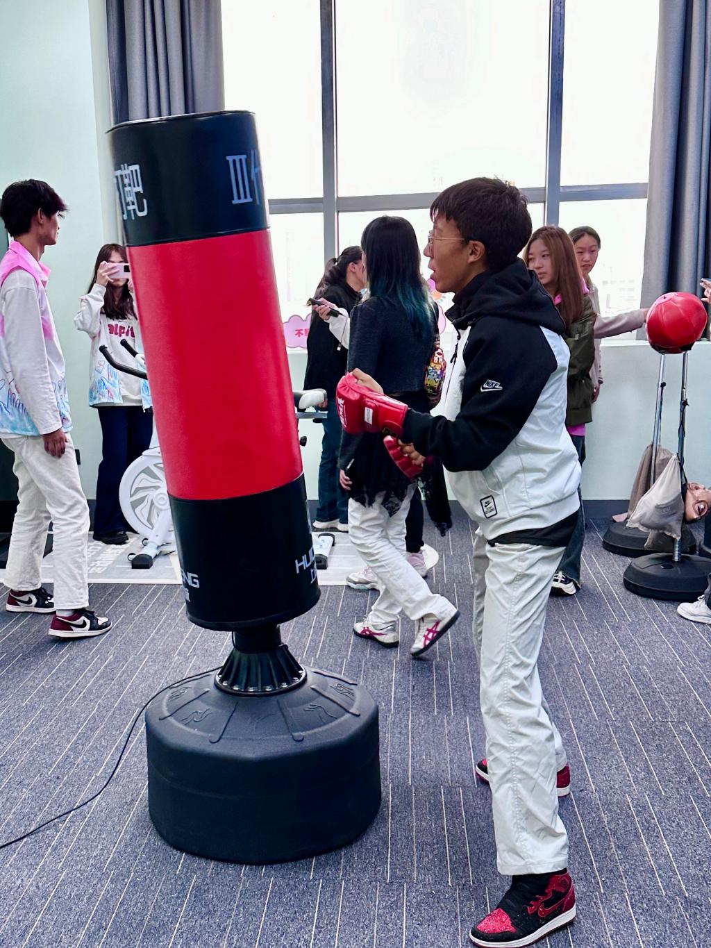在活动过程中,新生们通过讲解员的介绍了解了威尼斯心理健康教育中心心理咨询的预约流程及注意事项。此外,新生们还了解了相关设备,体验了沙盘室、心理体验室、综合素质训练室、情绪宣泄室等功能室。随后,在工作人员的组织下,同学们参与了“击鼓传花”“数字令”等活动。