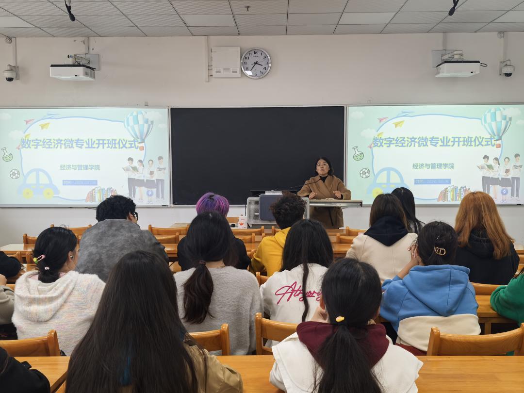 据悉,经济与管理学院经过多方论证,2024年申报数字经济微专业并获得学校批准,学院制定了科学的人才培养方案和详细的教学计划,本次数字经济微专业班29名同学本周开始上课。经济与管理学院一直重视专业发展和人才培养,积极创新,大胆探索高质量复合型经管人才培养模式,不断提高人才培养质量。(通讯员 米晨 石党英 审核人 袁梁)