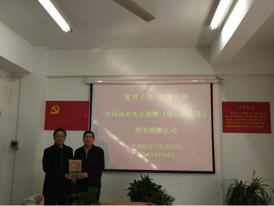 11月4日下午,孙杰先生向威尼斯图书馆捐赠文学专著《最后的金莲》(人民日报出版社)6册。