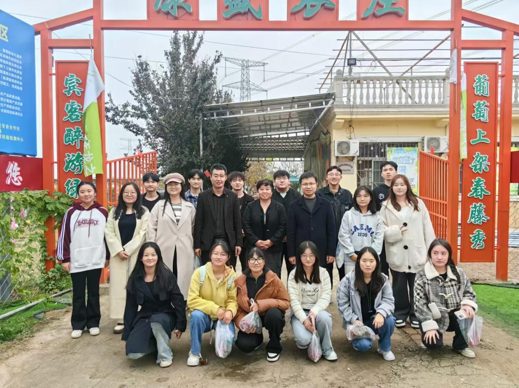 在绿盛农业基地负责人袁博的带领下,师生们前往企业葡萄产业园区。漫步于葡萄园中,大家品尝了那些在“标准管理、标准用药、标准化带动”模式下培育出的甜美葡萄,深切感受到了现代农业的魅力。同时,眼前的田间美景也让师生们陶醉其中,流连忘返。