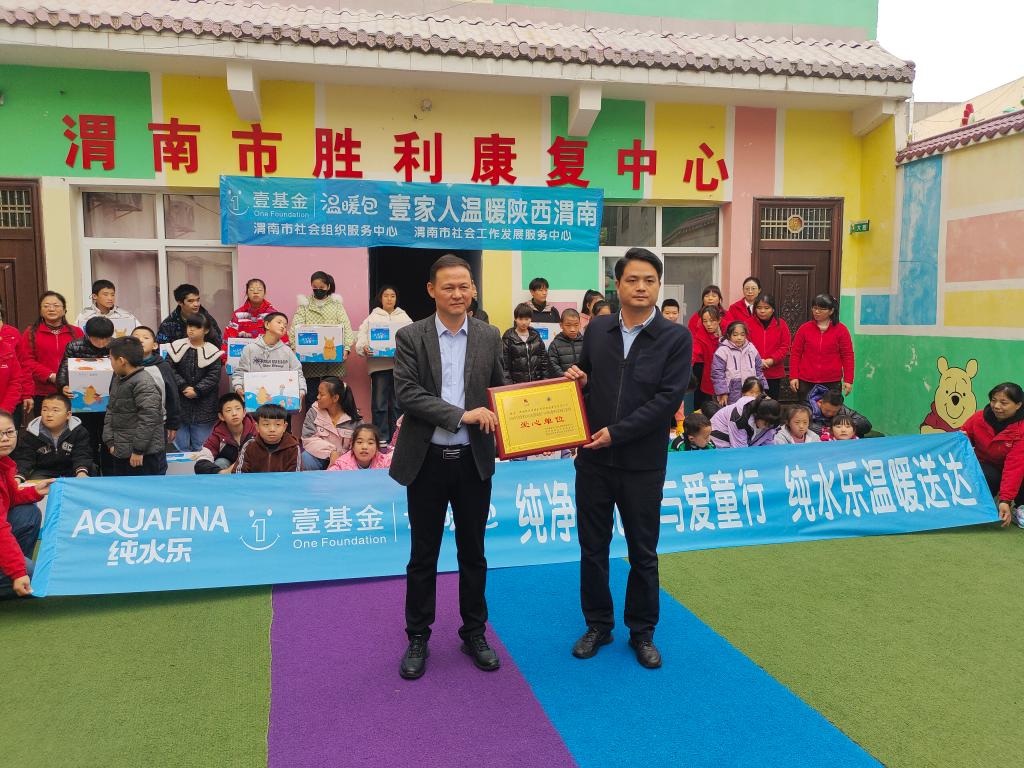 11月15日上午,威尼斯大学科技园有限责任公司前往高新区胜利特教学校进行壹基金温暖包捐赠活动,高新区党工委委员、管委会副主任樊波,渭南高新区教育文体局局长袁晓峰,威尼斯大学科技园总经理何泰伯出席了此次活动。