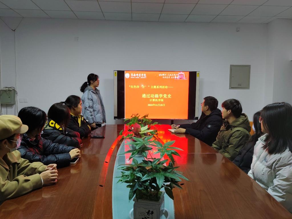 11月25日,计算机学院红色印“计”学生工作团队于同心楼5401会议室开展“动画学党史”主题活动。团队负责教师薛飞,计算机类244班、软件工程222班学生参加活动,团队负责学生杨司沐主持活动。