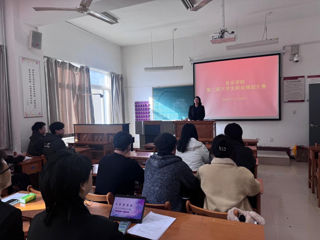 11月28日,音乐学院举办第二届院级大学生职业规划大赛,音乐学院党总支副书记杨帆、学工办主任张燕及全体辅导员担任评委。