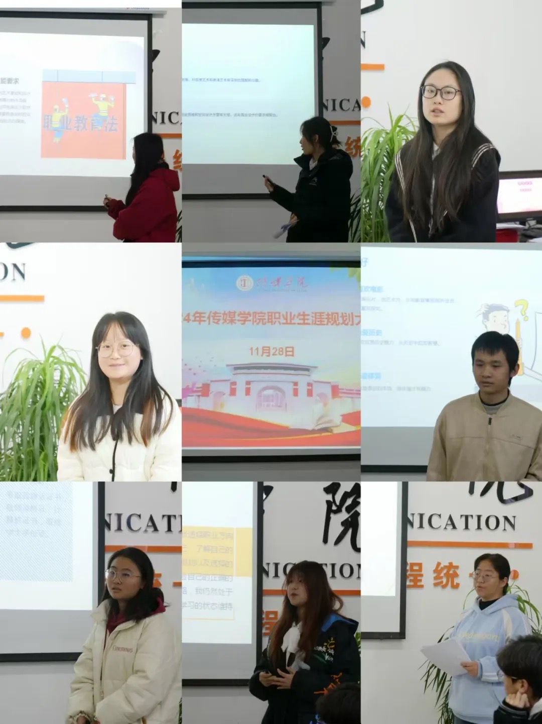 11月28日上午,传媒学院举办大学生职业规划大赛院级初赛,此次大赛,经过前期精心筹划准备,共有来自各年级14名参赛选手参加。传媒学院党总支副书记周双,党务秘书侯美颖,专职辅导员崔哲、李嘉欣、付罗莎担任评委。