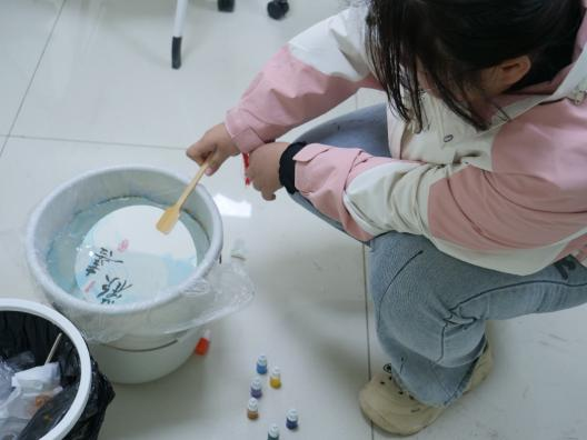在实践环节中,同学们亲自动手制作漆扇,他们从选择颜色,涂抹漆扇,到进行绘制,用心感受着漆艺的独特魅力。在制作过程中,同学们的创意与个性得以充分展现,最终成品既代表了他们对漆扇工艺的理解,也体现了每位同学独特的艺术感觉。