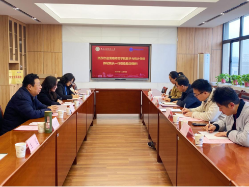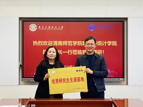 12月5日下午,数学与统计学院院长陈斌、统计系主任董晓萌、办公室副主任夏超及青年博士王伟,前往西安建筑科技大学理学院,就研究生联合培养工作进行深入交流调研,并召开座谈会。