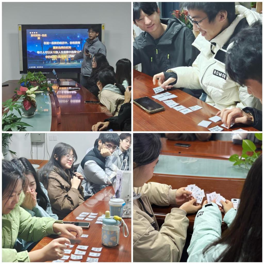 12月8日晚,计算机学院“职”引亮“计”工作组于同心楼5401开展“兴趣探源·梦想起航”主题活动。小组成员及部分学生代表参加活动。活动主要包括MBTI职业性格测试、“人生当铺”互动游戏两个环节。