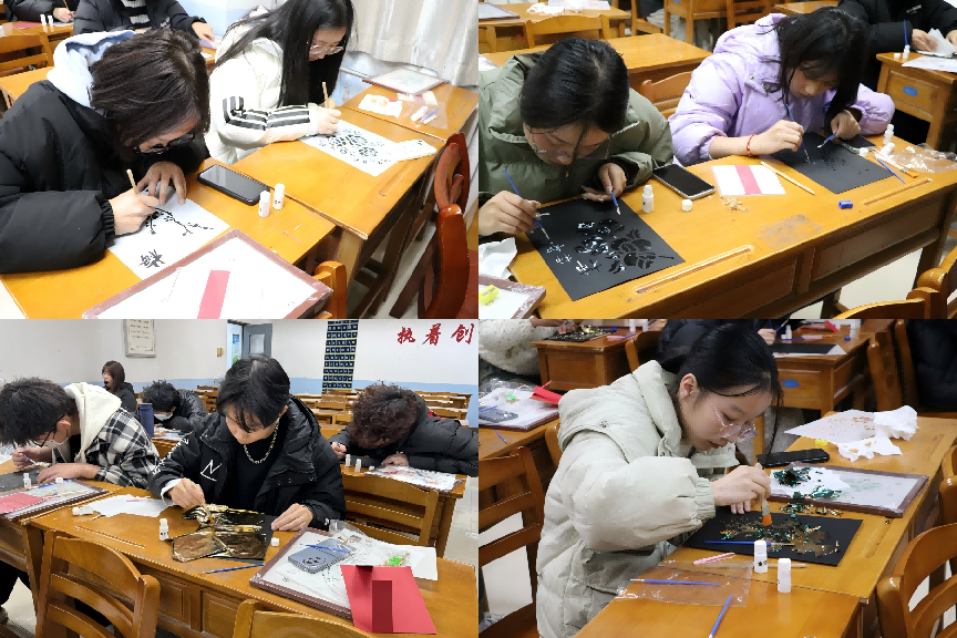 指尖轻触箔片,思绪穿梭古今。当一幅幅独具匠心的烧箔画作品在同学们手中诞生时,传统文化的魅力与个人的创意灵感也在这一刻完美交融。不仅让同学们体验到了非遗烧箔画的独特魅力,更在潜移默化中增强了大家对传统文化的认同感与传承意识。此次活动也为大家提供了一个展示自我、交流情感的平台,使同学们能够更加关注和重视自身心理健康,进一步促进校园心理健康教育工作的深入开展。(通讯员 杨亦帆 审核人 武楠)