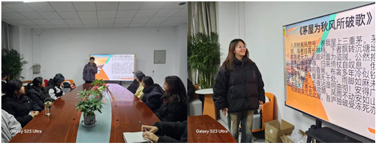 参与学生首先围绕李白、杜甫、白居易等唐诗大家的经典作品进行探讨和交流,通过解读古诗词产生的历史典故、用字用词、人物特点,引导大家领略古诗词的优美意境与深邃内涵,加深学生对于古诗词深厚文化的认识。
