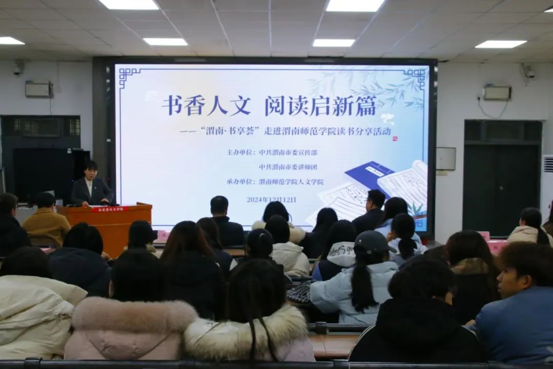 12月12日下午,由渭南市委宣传部、渭南市委讲师团主办,人文学院承办的“书香人文 阅读启新篇”——渭南·书享荟读书分享活动在博识楼 1101教室举行。渭南市委办副主任廉璐佳、人文学院院长赵前明出席活动,人文学院党总支书记张晶主持活动。