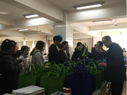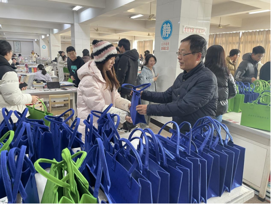 12月16日下午,图书馆开展送“温情礼包 暖心祝福”活动,以祝福学子“研途”顺风顺水、“一研”上岸。