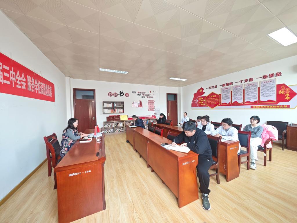 王雅蓉在总结讲话中,详细传达了附属医院落实学校高质量发展和本科教育教学审核评估重点工作任务清单。她希望全体党员同志积极行动起来,围绕任务举措,抓好落实并要求提高政治站位。要认真学习领会党的二十届三中全会精神,深刻理解全会提出的一系列重大理论观点、重大工作部署,把学习宣传贯彻党的二十届三中全会精神作为当前和今后一个时期的重大政治任务,不断增强深刻领悟“两个确立”的决定性意义、增强“四个意识”、坚定“四个自信”、做到“两个维护”的政治自觉。要积极担当作为。要充分发挥党员干部表率作用,带头学习、带头落实,根据职责分工把贯彻落实全会精神与抓好各自岗位的重点工作结合起来,以高度的责任感、使命感抓好各项工作任务落地落实,积极推动医院改革与发展同频共振、深度融合,推进医院管理更加科学化、规范化。要抓好学用结合。要对照全会确定关于深化医药卫生体制改革的目标,结合医院实际,围绕“全心全意为师生健康服务”理念,不断深挖医院人文内涵,提升医疗服务水平,强化医德医风建设,为学校的高质量发展贡献自己的力量。(通讯员 王鹏 审核人 王雅蓉)