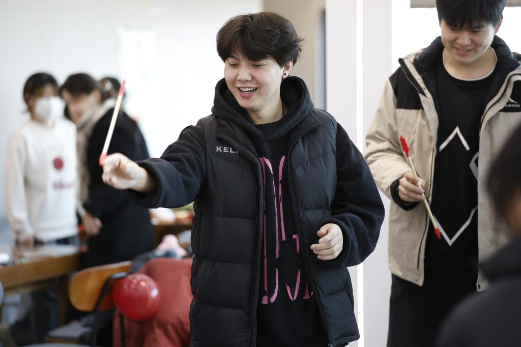 活动开始前,师生于签到处领取饺子吉祥物并书写祝福,情谊满溢。随后,包饺子环节正式开始,师生们热情高涨,纷纷大显身手,现场气氛温馨而欢乐。与此同时,别出心裁的30秒钟“饺”运会、“壶纳冬福”投壶游戏、“筷”乐乒乓大挪移等团队竞赛以及“零零七”“眼疾手快”个人挑战赛也如火如荼地展开。最后,众人围坐共品饺子,在温馨氛围里交流互动,拉近彼此距离。