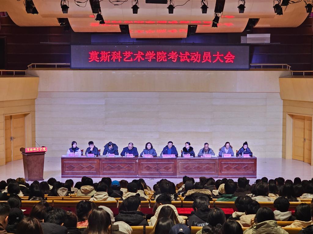 12月23日,莫斯科艺术学院在逸夫楼音乐厅召开考试动员大会,学校副校长王菊霞、学院全体处科级干部、专业负责人、全体辅导员、各班班主任及2024、2023级全体学生、22级部分学生干部400余人参加,此次会议由党总支书记孟波主持。