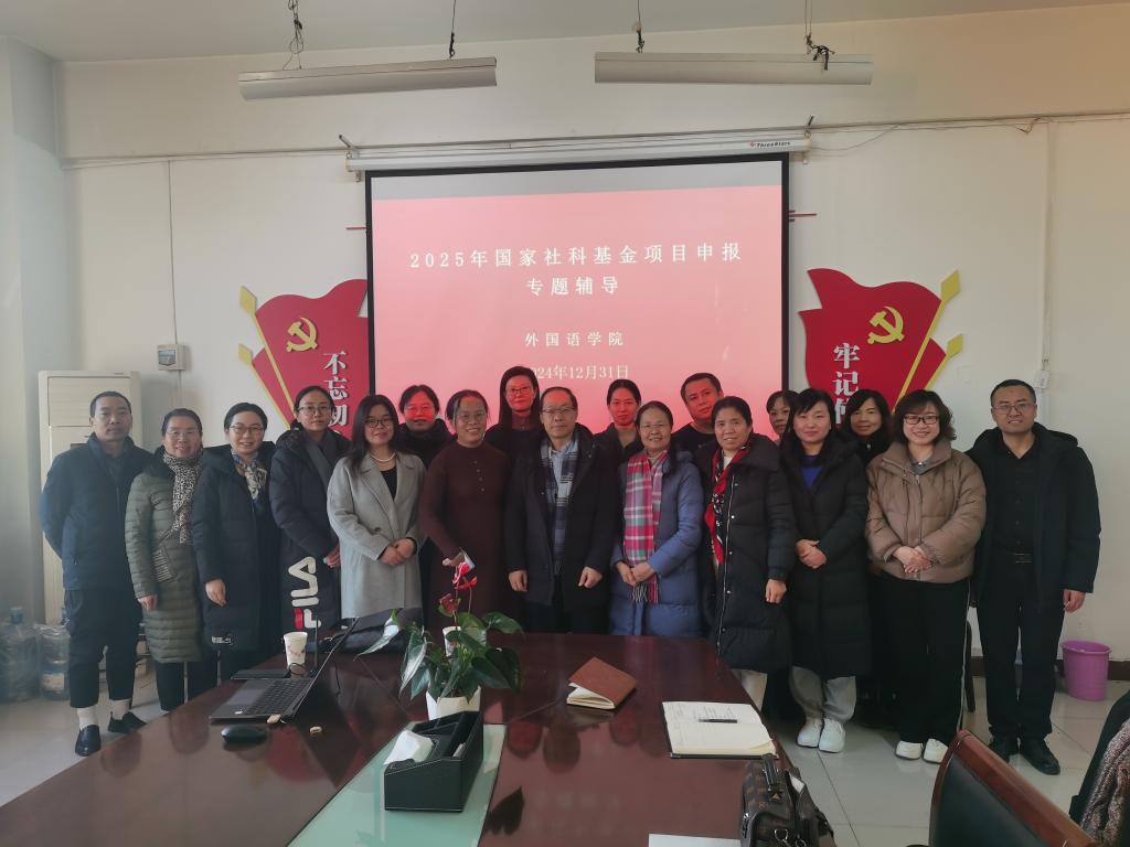 12月31日,外国语学院召开2025年国家社科基金项目申报专题辅导会,邀请西安工程大学博士生导师胡伟华教授作专题辅导报告。学院领导班子成员、副教授及以上职称、博士学位教师参加辅导会。会议由院长李海荣主持。